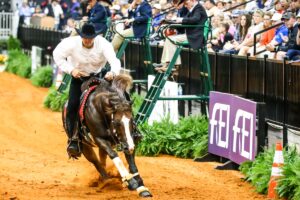 The Team Competition counted 12 full teams and, with a phenomenal 681 composite, Team USA clinched its fifth consecutive team gold medal. First to enter the pen on home turf was Casey Deary riding Hilldale Farm’s Heavy Duty Chex; the pair marked a 223.5. With five horses left to show in the first section, Team USA’s youngest rider, 18-year-old Cade McCutcheon, laid down an impressive performance aboard Custom Made Gun, a 7-year-old stallion owned by his grandparents, Tim and Colleen McQuay. Once he closed his run, a 229 appeared on the score board. The talented young rider set the bar and his score held until the very end. “I’ve been riding this horse since he was a 4-year-old and he keeps getting better every year,” said an enthused McCutcheon. “This is the highest score I have ever posted and being able to get this done representing my country is truly an honour.”