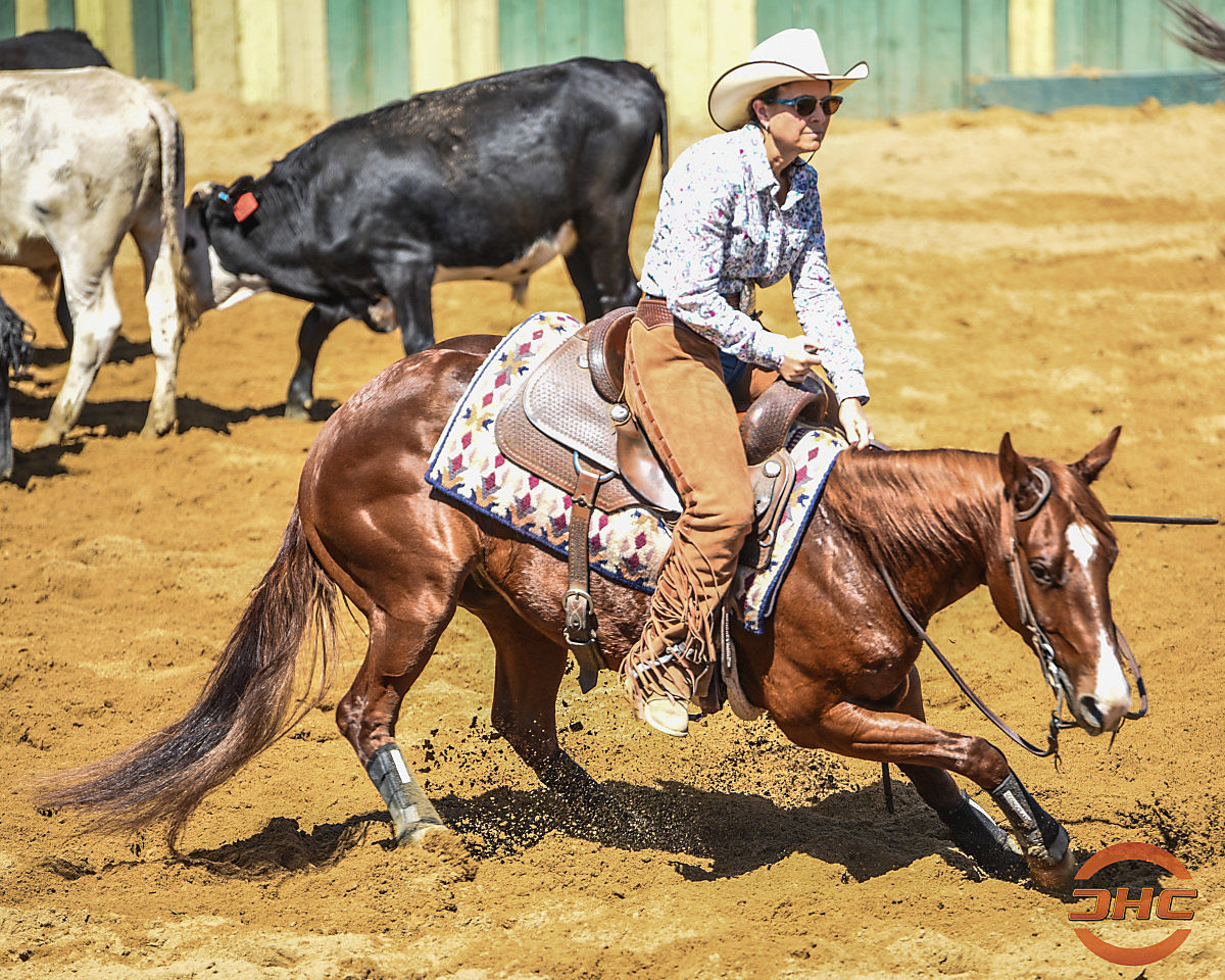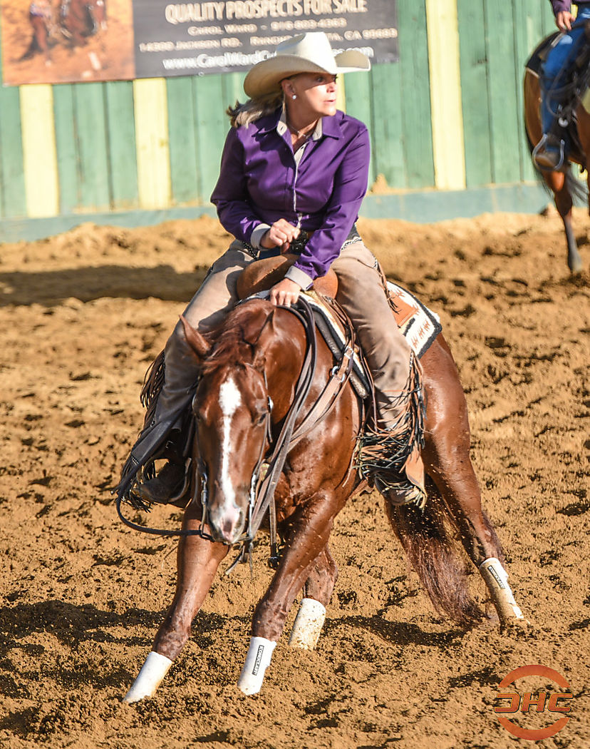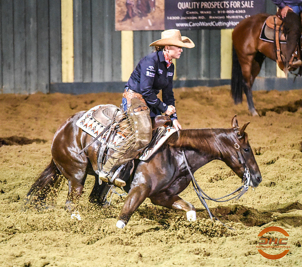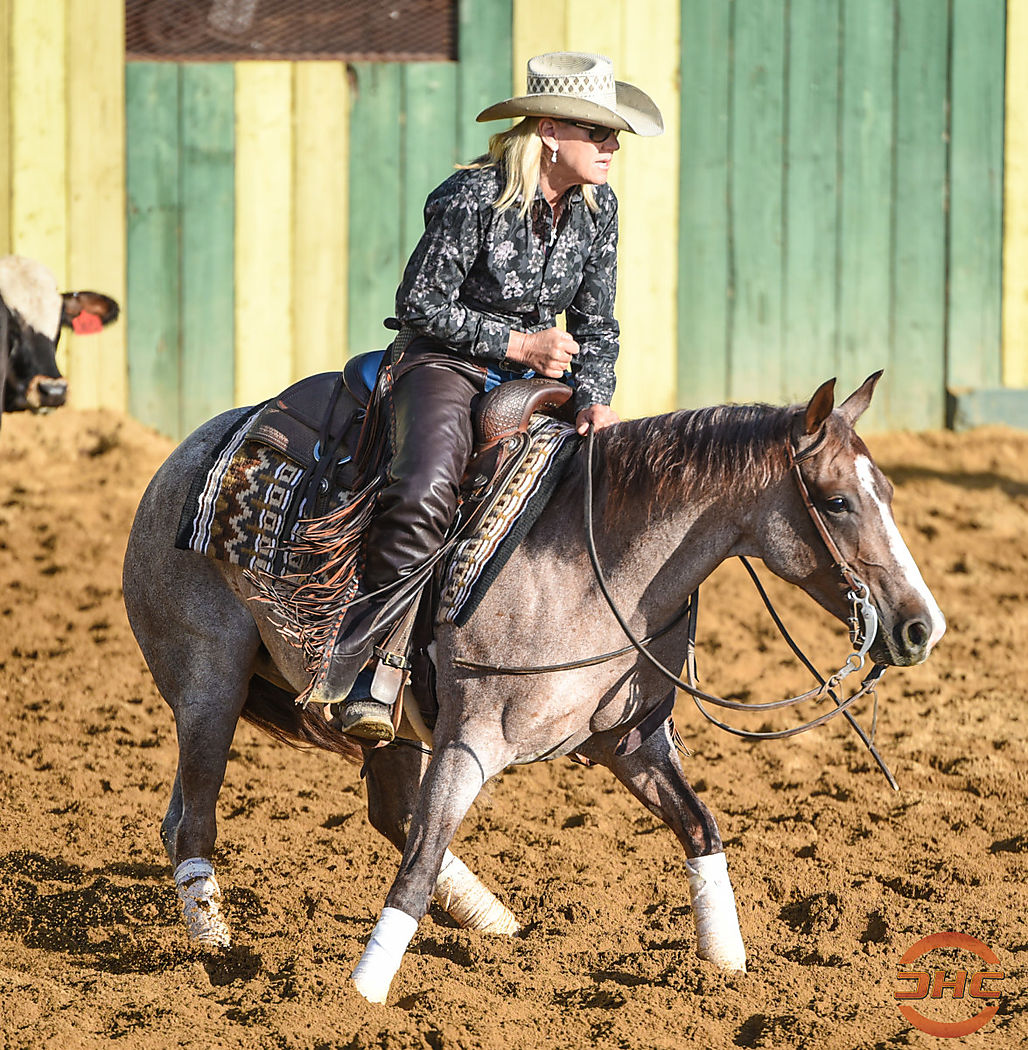 Tracey Woodward claimed the Futurity Non-Pro Championship with a 427 cumulative score aboard her home-grown gelding, R Cat Mr Wilson (Rascal Cats x DS Miss Wilsons Freckle). This was only the beginning of her amazing week with all of the babies her family has raised.