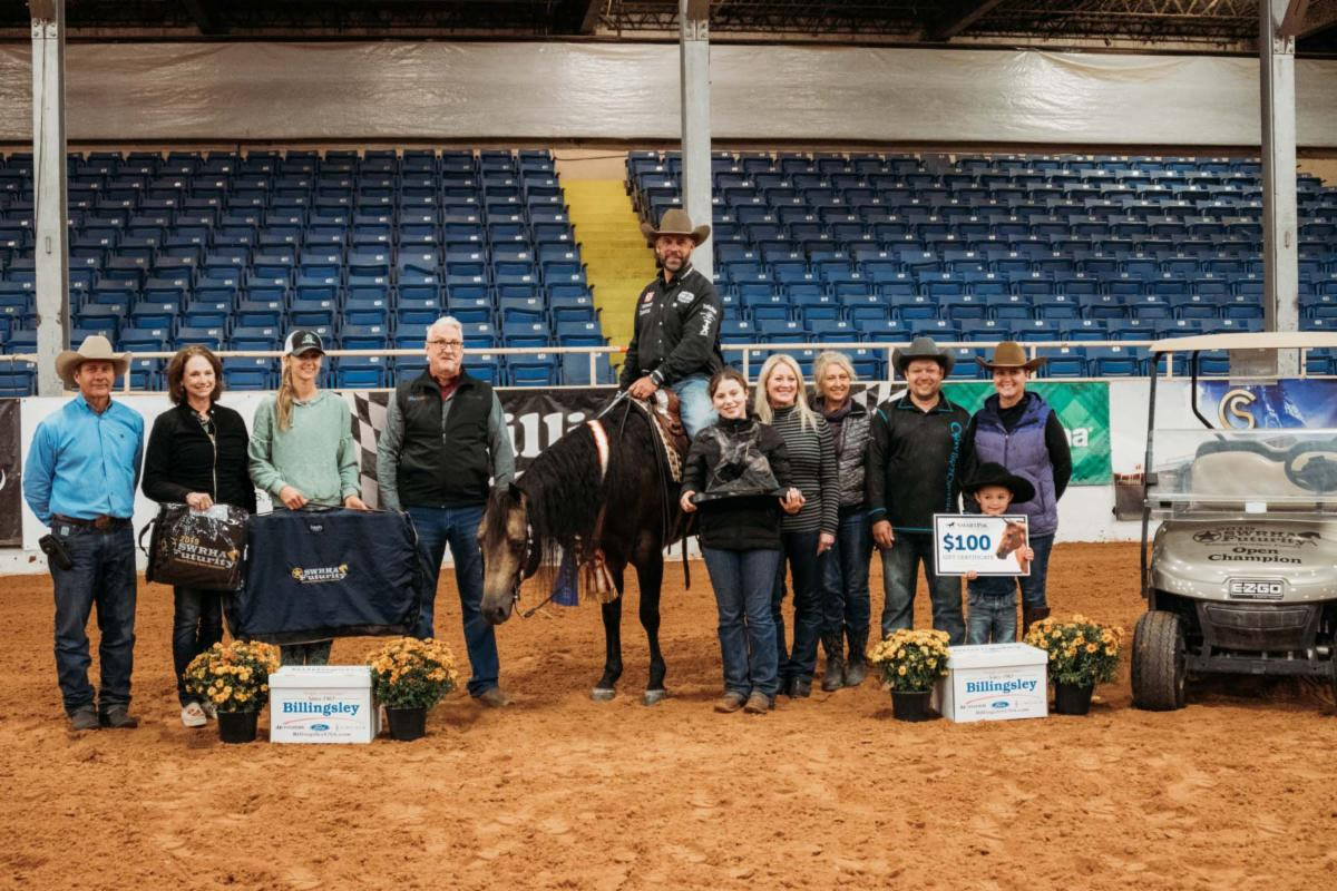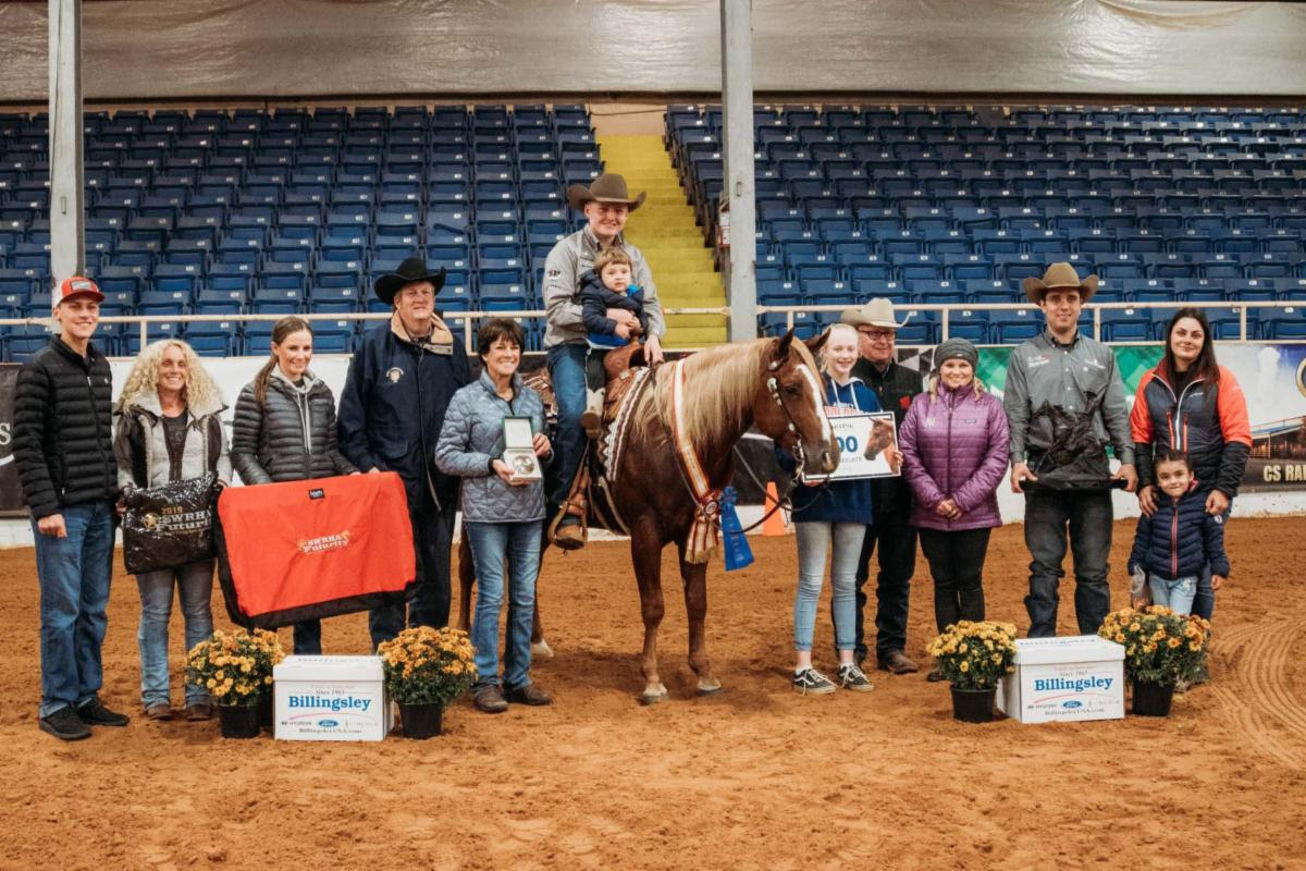 The highest scoring mare in the Billingsley Ford Open Futurity wins a $1,000 bonus, sponsored by Rancho Sereno and Premier Equine Veterinary Services. In addition to the $1,000 check, Humphrey Quarter Horses donated a breeding to Guns R For Shootin to the high scoring mare.