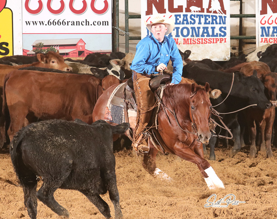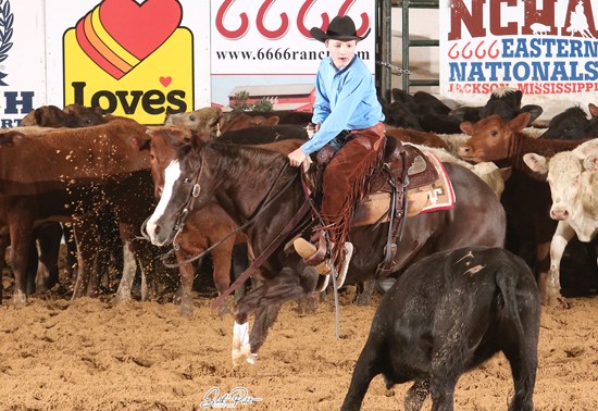 Cody Gann, Leighton, Ala., scored 222 points on Hevvy Metal, by Metallic Cat, to win the 2019 NCHA Eastern Nationals Junior Youth Championship. Will Bushaw, Weatherford, Tex., aboard Smooth Sailing Cat, by Smooth As A Cat, claimed the reserve title with 216.5 points, while Breanna Collier, Cypress, Tex., placed third with 214.5 points on Creyzy Train, by Auspicious Cat.