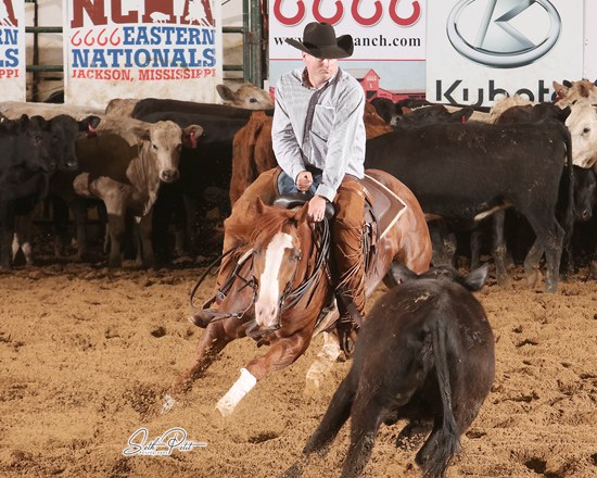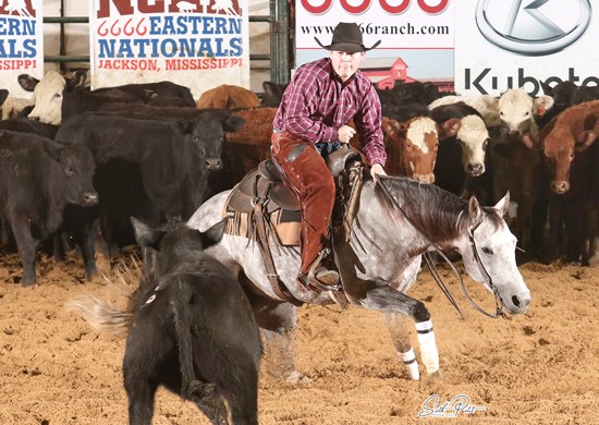 Larry Cooper, Orleans, Ind., overwhelmed the field with a 222-point win on LCS Silver Cat, by High Brow Cat, in the NCHA Eastern Nationals $35,000 Non-Pro Finals, on Wednesday, March 11. Carrie Watkins, West Mansfield, Ohio, claimed the reserve title with 216 points on Smart Mojo Cat, by Cats Moonshine, while Madeline Nix, Blackville, N.C., and Chase Lackey, Burlington, N.C., tied with 214.5 points to split third and fourth on Two Cat Shakur and Cowgirl Catsanova, respectively.