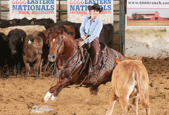 Guy Woods and 10-year-old Ichi Sangria, by Cat Ichi, placed third in last year’s NCHA Eastern Nationals Open. Together, Woods and Ichi Sangria have won four NCHA Eastern championship titles and placed in eight more; they have also placed in five NCHA Western Nationals finals. Woods, the NCHA Open Hall of Fame earner of over $2.7 million, has won 13 NCHA Eastern Nationals titles riding for EE Ranches, including the Open championship on Scratchin, the dam of Ichi Sangria.