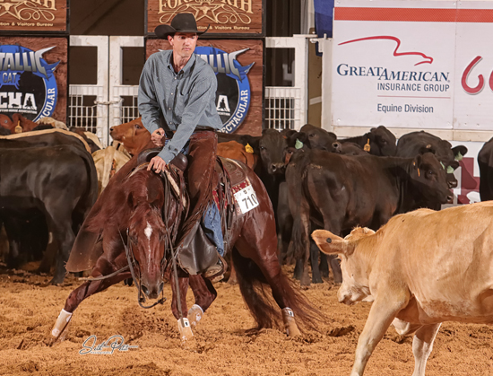 Hott Nu Cowboy LTE $132,896, ridden by Cullen Chartier for Circle R Cutting Horses, Oclala, Fla., scored 223 points to place third. The 6-year-old Hottish-sired gelding was bred by Wrigley Ranches, Weatherford, Tex., out of the High Brow Cat daughter Special Nu Kitty LTE $301,268, dam of 7 NCHA earners of $491,951.