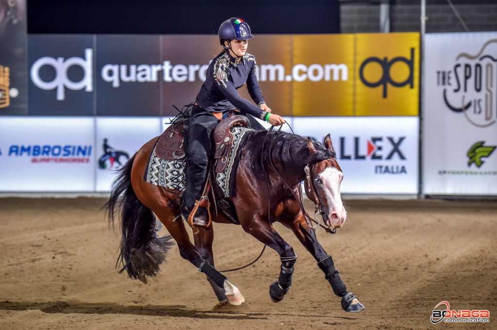On top of the L1 with a 210 score was Italy’s Chiara Alboni and her own Ops I Did It Again (Gunner Dun It Again x Dun Whiz Crome), a mare bred and nominated by Luga Quarter Horses.