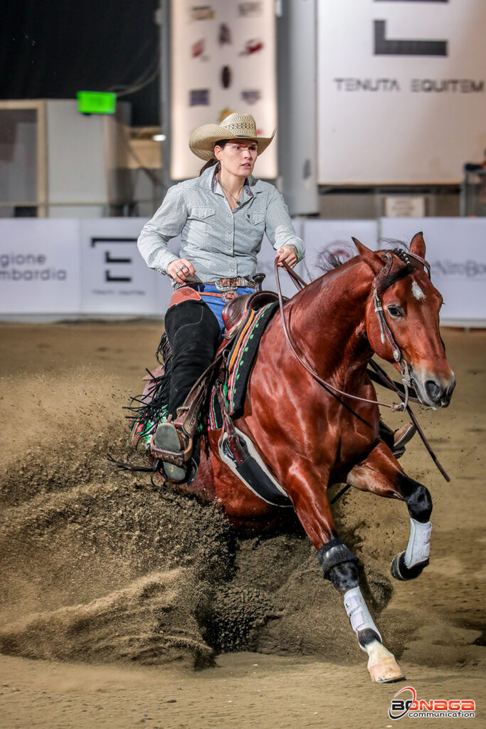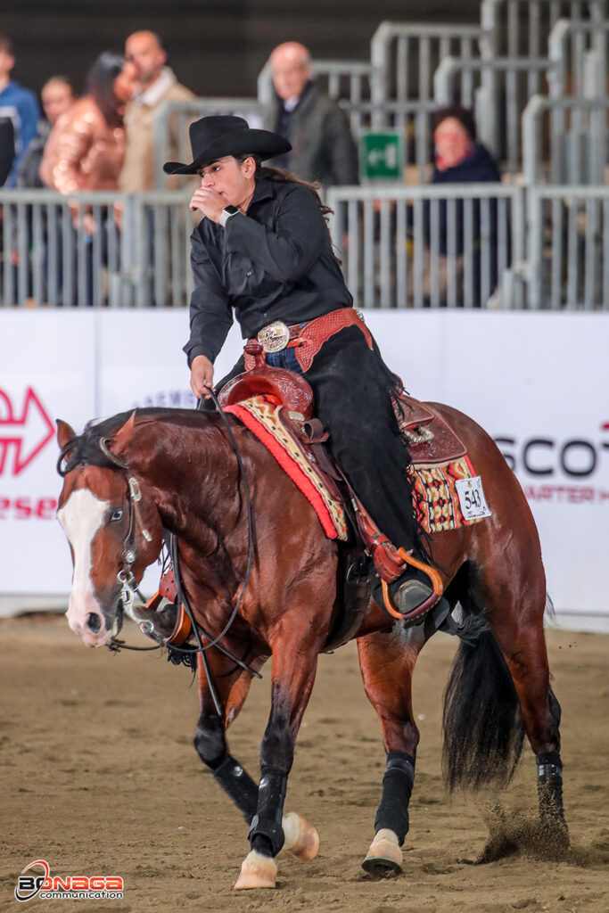 The tie was with Youth Non Pro division leader, Annalisa Solbiati aboard SM Wanna Walla (NRHA $5 Million Sire Walla Walla Whiz x SM Inside Gun), a mare owned and bred by Massimo Solbiati.