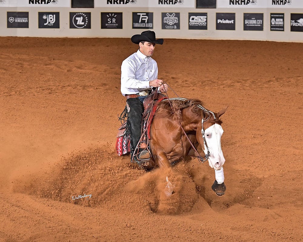 Casey Deary and the Arcese Quarter Horses USA bred, owned and nominated Belissimo (Magnum Chic Dream x Americasnextgunmodel) closed the finals with a bang. A monster 231.5 is what it took to clinch the MS Diamonds TX Level 4 Open Futurity Championship and a check for $350,000. Deary also tied for reserve and earned $130,000 with Maverickbuzthetower (Americasnexttopgun x Chics Vintage Flare) owned by Bosque Ranch Performance Horses LLC, bred by Spradling Unlimited LLC and nominated by Glenn Spradling; not to mention another $25,000 with Hello Pretty Woman (Walla Walla Whiz x Americasnextgunmodel) owned, bred and nominated by Arcese Quarter Horses USA. The total check of $505,000 pushed Deary over the NRHA $6 Million Rider mark. Casey wasn’t the only Deary to take home a piece of the pie—his son, Owen, won more than $102,000 in the Non Pro division a day before.