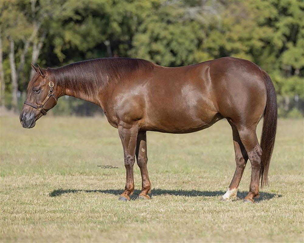 By NRHA Thirteen Million Dollar Sire Spooks Gotta Whiz, A Love Affair is out of Love Em N Lena, an own daughter of NRCHA Million Dollar Sire Smart Little Lena. The legendary sire also produced Smart Chic Olena, responsible for countless million-dollar sires and dams on the NRHA list. Shawn Parry secured the fancy filly and will take her home to Bozeman, Montana.